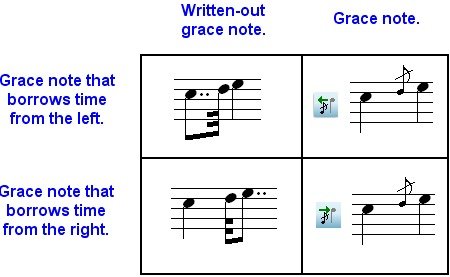 - Acciaccatura: very fast grace note. You crush it into the main note.